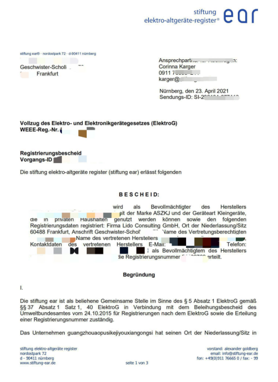 2、输入您的WEEE/电池法注册号(如:WEEE:Registration number of the EAR : WEEE-Reg.-Nr.DE*******/