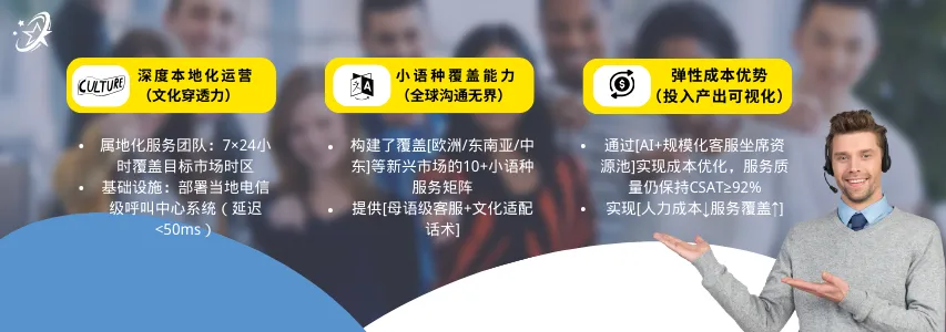 真正聪明的卖家,都在用一种很新的客服外包2025年,全球电商行业进入到了“体验为王”的新时代。面对销量呈现的波动式增长态势,跨境电商卖家再度陷入新一轮的焦虑当中:销量上来了,服务能不能跟得上?怎样有效降低用户流失率?如何提升客户忠诚度与满意度?事实上,除了优质产品和精准营销外,客户服务和用户体验已经成为影响消费者去留、品牌声誉乃至最终销售额的关键因素。想要搭建一支高效、顺畅运作的客服团队并非易事,尤其对于跨境电商而言。 主要面临以下几种挑战:⭕ 多语言与专业能力难以兼得跨境电商覆盖全球市场,除了需要熟悉产品特性、功能、使用方法、常见问题等,客服团队还需要掌握目标市场相应的语言能力,如英语、西班牙语、德语、法语、日语等。