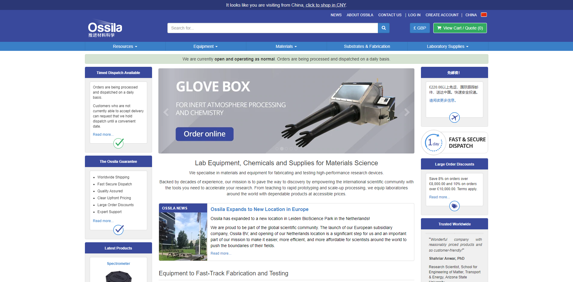 - ossila向全球80多个国家/地区的1000多家不同机构供应产品。