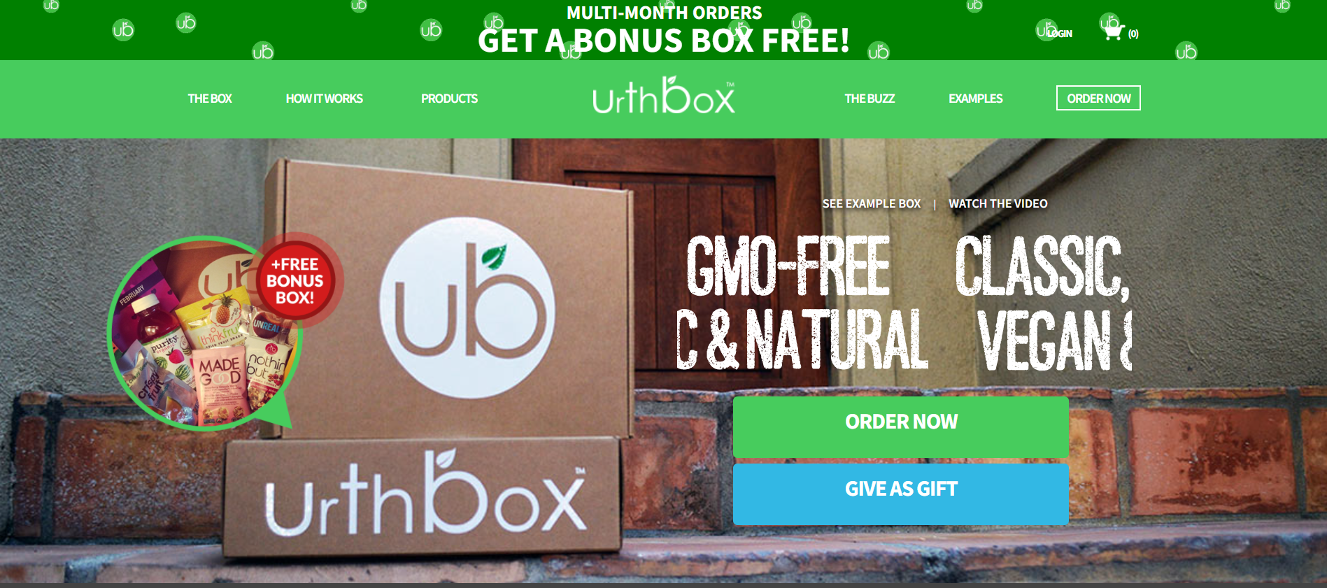 关于UrthBox 产品类型 1、经典 2、无麸质 3、素食主义者 4、饮食 工作原理 1、选择一个盒子 2、开始发现 3、赚取积分 UrthBox的优势