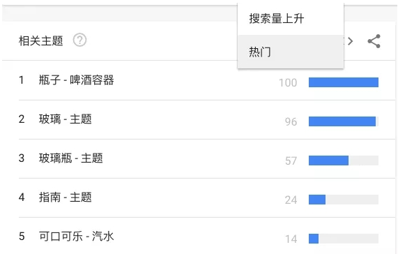 (3)相关主题--可以通过“搜索量上升”或者是“热门”进行排序: