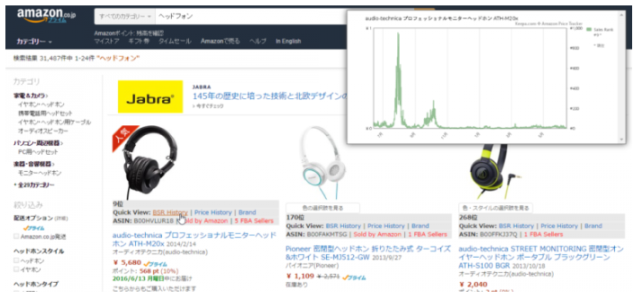 (1)BSR排名和排名变化图表:纵轴表示排名,横轴表示日期。与当前排名一起,使用此图表在全面研究之前大致掌握排名,比较适合粗略研究。