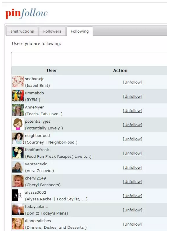 PinFollow是一个工具,它可以自动完成过滤用户的任务,以便在一次点击中取消关注他们。