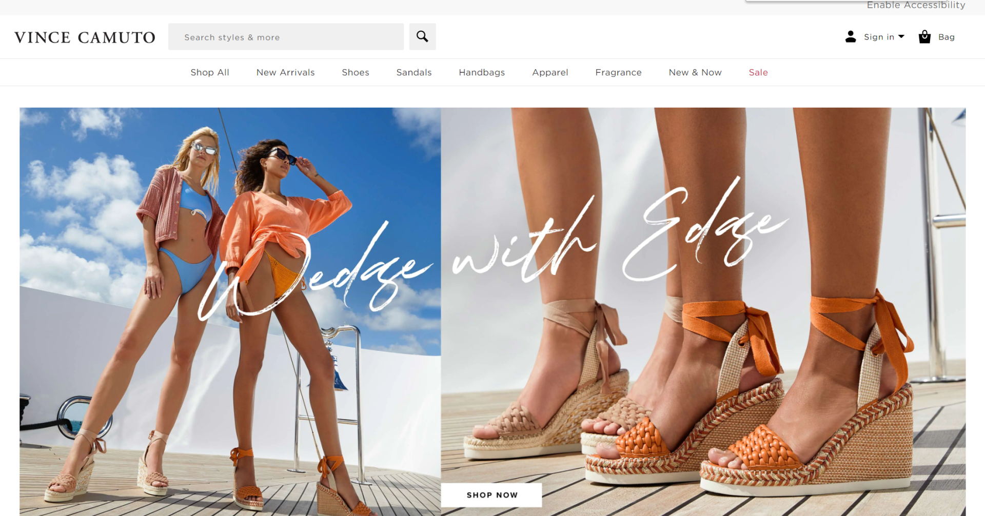 VINCE CAMUTO是2005年创立的美国鞋履品牌,与创始人命名,创造出巧妙融合时尚和功能的精美鞋履。我们的鞋履设计优雅、制作精良、构造精确,符合 Vince 的风格、舒适和实惠的价格原则。amz123