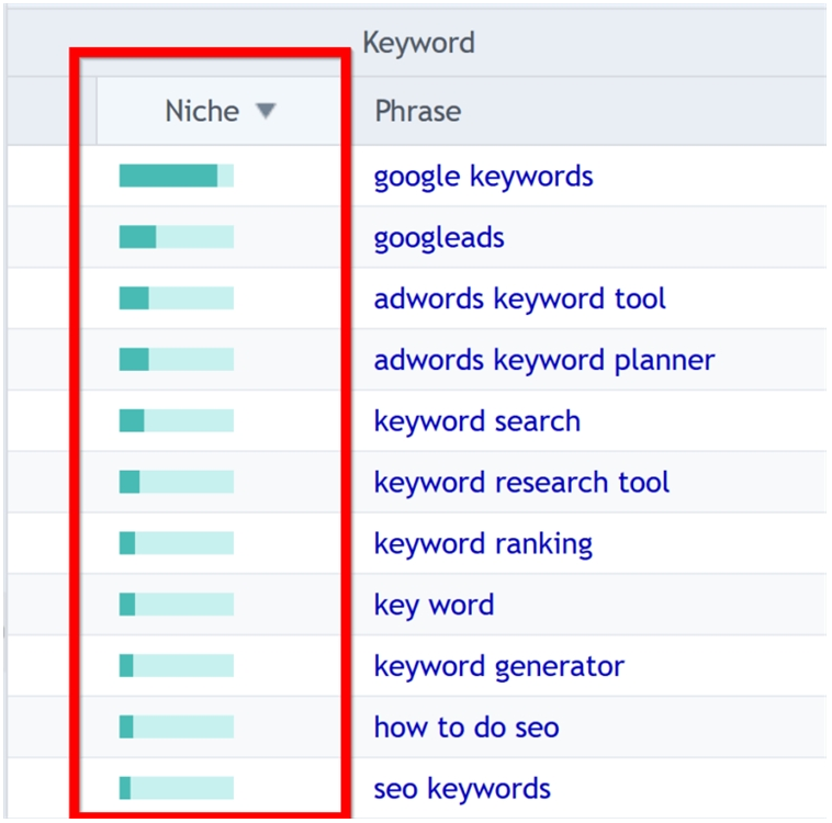 此外,SECockpit中还有“Niche”一栏,并用深绿色横条指示: