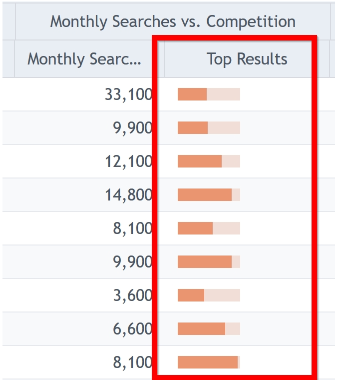 在每月搜索一栏旁,还有“Top Results”,用橙色条显示特定关键词要进入搜索结果Top 10的难度。通过点击关键词,卖家就可深入了解该关键词在谷歌搜索结果页首页的竞争情况: