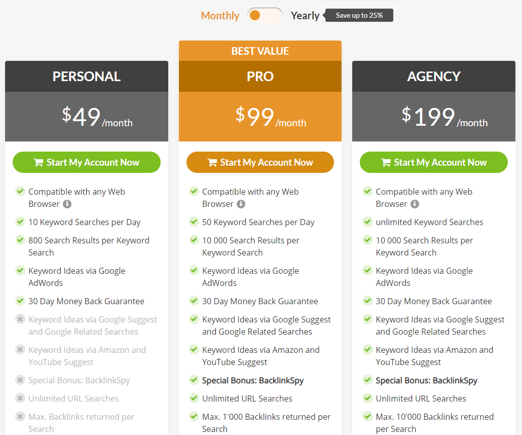 有不同的费用版本可选,分别为:$49/月,$99/月,$199/月。具体详情可进官网查看。