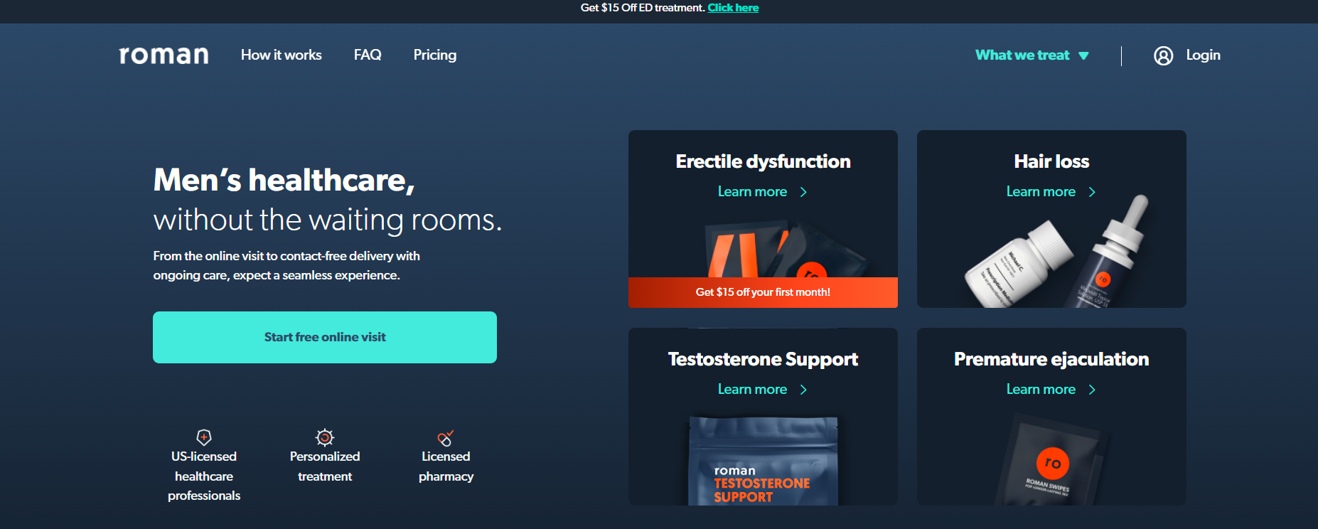 roman治疗的每种疾病都有其特定的在线访问,这消除了不必要的、耗时的问题,并仅关注有助于您的医生或执业护士评估最适合您的治疗方案的症状和病史。amz123
