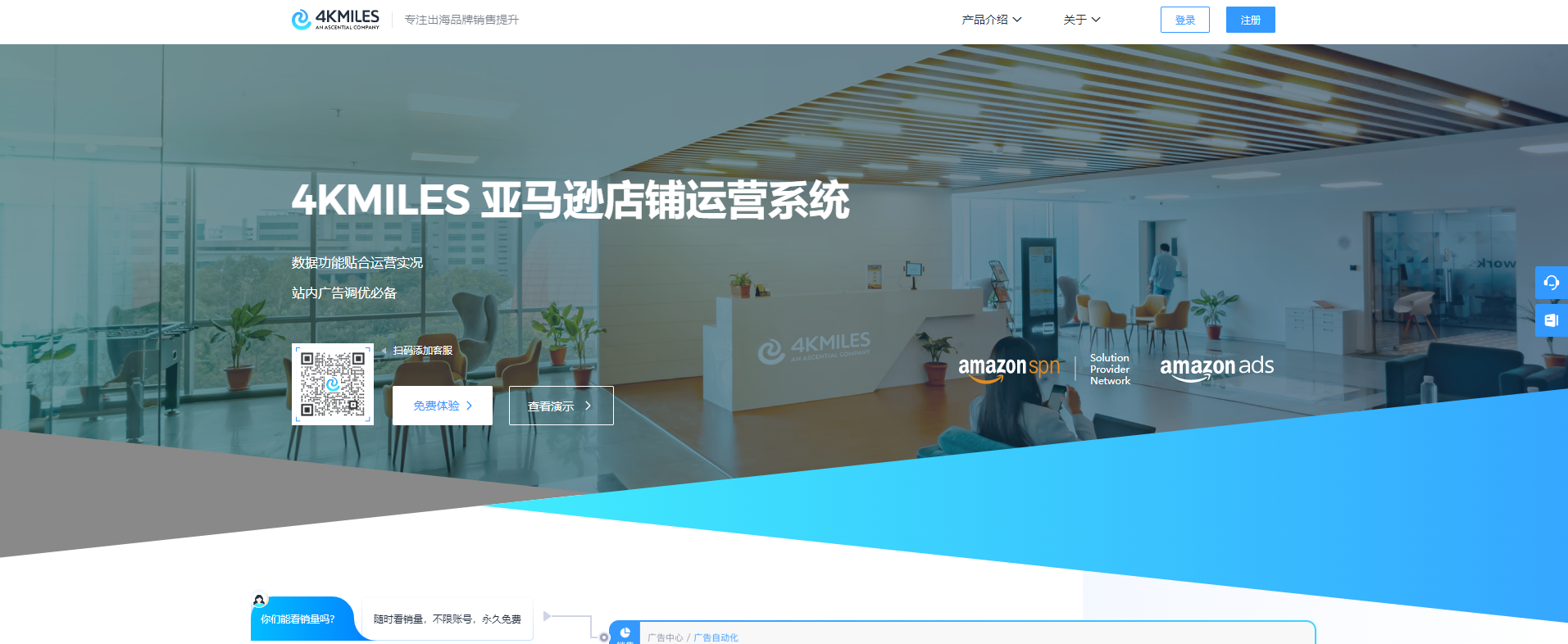 - 广州四千里数据科技有限公司依托自有系统和大数据技术,4KMILES拥有全面的店铺运营系统和营销数据分析看板,帮助品牌更有效管理产品与销售绩效,同时通过智能广告投放和营销服务创造主动式流量,方方面面打造中国品牌在全球网络的增长机遇。作为亚马逊广告合作伙伴,4KMILES为客户提供DSP广告托管服务。