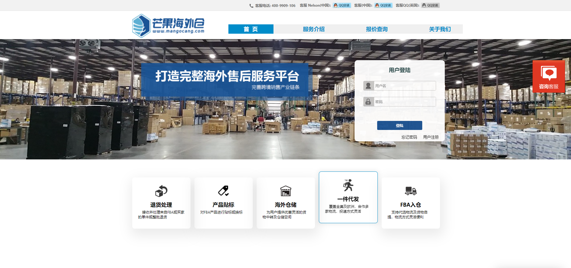 芒果海外仓建立了完整的服务标准,并配合使用自研信息系统,为客户提供了完整的跨境电商服务一站式解决方案。客户可以通过网站信息系统享受全面的操作追踪,数据统计及库存信息。