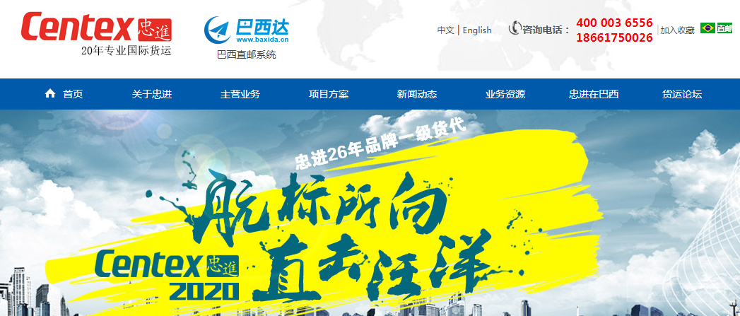 忠进国际货运(青岛忠进国际货运代理有限公司/Centex Int’l Freight & Forwarding)于1994年成立,是第一批由中国外经贸部(现国家商务部)正式批准的一级国际货代,也是中国国际货代协会 (CIFA) 的第一批会员。amz123 关于忠进国际货运 现在,忠进还是中国交通部注册的无船承运人(NVOCC)。 到目前为止,忠进已经在全国拥有28个机构包括(青岛忠进货运公司、天津忠进货运公司、深圳忠进货运公司、广州忠进货运公司、宁波忠进货运公司、厦门忠进货运公司、上海忠进货运公司、南京忠进货运公司、大连忠进货运公司、潍坊忠进货运公司、威海忠进货运公司、福建忠进货运公司等)覆盖了中国各大港口和沿海主要物流中心城市。并在香港和韩国各有一个合资公司。在巴西拥有全资子公司。在海外,忠进在100多个国家拥有可靠的代理与合作伙伴。完善的国内外网络为忠进优秀的服务提供了强大的支持。忠进的服务和声誉得到了海内外的广泛任何。 公司主营国际货运代理业务,包括海运、报关、散杂货运输、超大货物运输、项目运输、第三方采购等。 主营业务 1、海运进出口业务 忠进国际助客户畅通全球各个港口,强势航线---南美洲、东南亚、欧美、印巴、中东。忠进运用强大的网络和专业的团队,为客户量身打造一级的物流解决方案, 全面迎合客户的海运需要。 2、集卡拖车 自有车队以及管理良好的协议车队,是忠进提供散货、集装箱长短途运输的有力保证。良好的协调給力,保证了多式联运的协调性。 3、报关服务 忠进精通海关法律和渠道,切实保障客户利益,保证清关时效性,忠进报关行常年被评为信誉通关单位。 4、港口查询 忠进国际货运为您提供世界主要港口分布图,主要港口,简称的查询。 5、巴西达 巴西达巴西专线是忠进推出的巴西包裹服务。妥投率高、时效快捷,全程时效仅需10-15个工作日。支持全程跟踪查询,是货物发往巴西最优的选择。订单输入方式:单票输入,订单批量导入,卖家平台授权,API对接。 优势 1、扎根于中国与巴西,专注于产业发展,为客户量身定做高效率、低风险、提供竞争性成本的物流与商务方案。 2、巴西拥有自己子公司,并有超过400名专业人员,具备流利中文、葡萄牙语、英语、法语、德语的一站式服务。 3、与巴西乃至南美洲各个港口与场站建立了可信任的合作关系。保证货物在港口的及时中转以及最具竞争性的成本方案。 4、与世界上多家船公司保持良好的关系。 5、南美洲多家自由拖车公司与报关行,为客户门到门服务、提供清关以及关税咨询提供强有力的必要支持。
