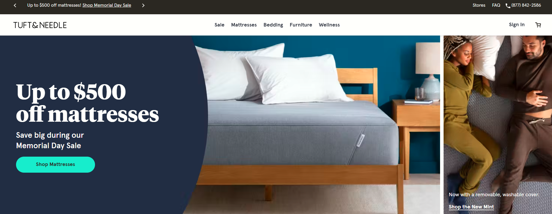 Tuft & Needle是一个床垫直销的在线销售网站。amz123