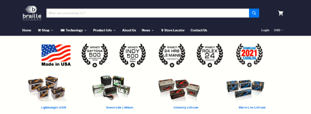 Braille Battery还是NASCAR、Open Wheel、Drag Racing、Rally、SCCA、NASA、Drifting、Motorcycle 以及所有级别的两轮和四轮比赛的顶级车队的供应商。