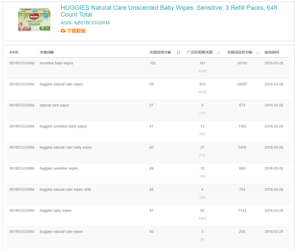 从上图我们可以看出系统推荐出来的关键词都是相关性非常高或者打CPC广告的关键词,我们可以使用该功能查询竞品或者自己产品的CPC关键词,从而进行优化增加产品曝光。
