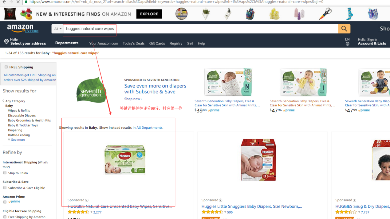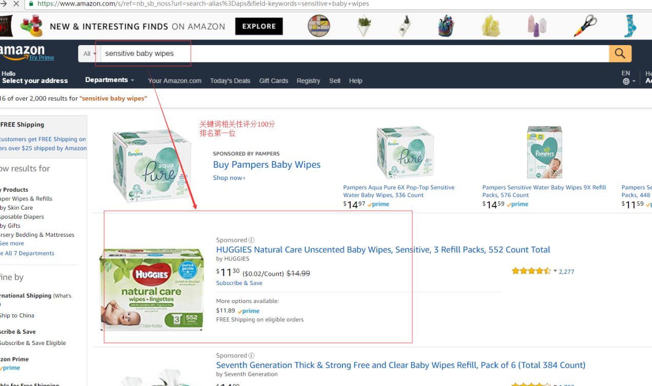 其中麦基可以看到当前产品出现在产品相关性较高的关键词有100个,我们可以将前两个相关度高,并且曝光量不错的关键词在亚马逊中查询看看: