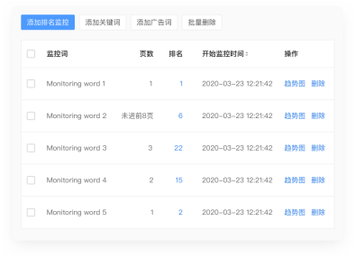 实时监控任意关键词的排名情况,助力精细化运营广告活动;