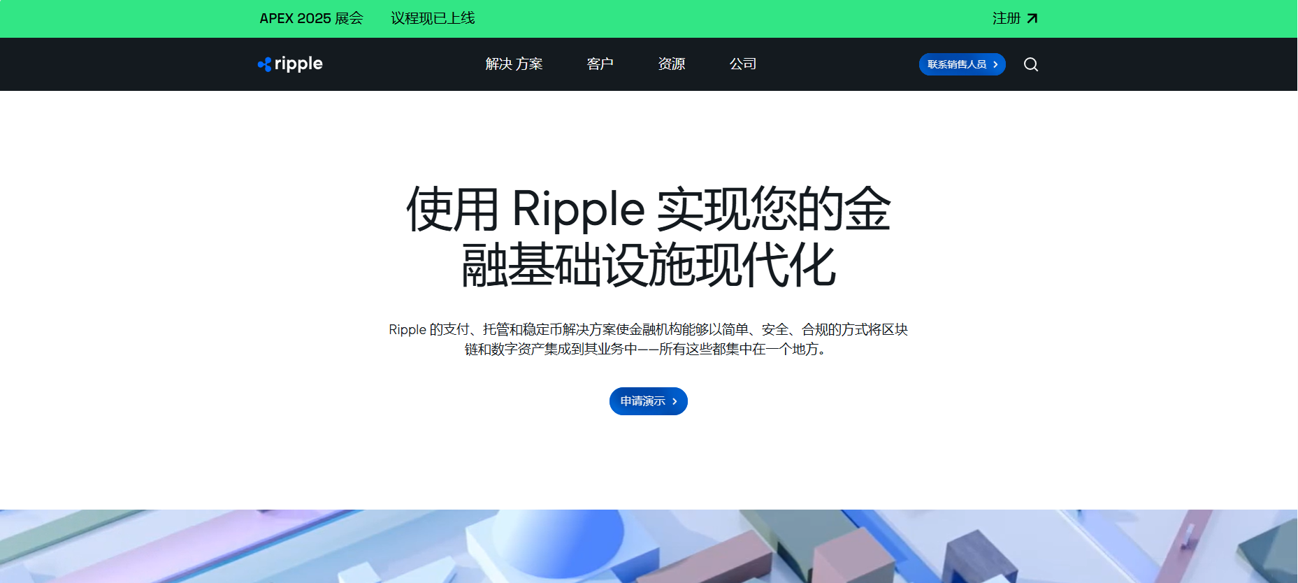Ripple 是一家专注于区块链支付与金融解决方案的公司,其核心业务是通过 RippleNet 提供跨境支付服务。RippleNet 是一个全球性的支付网络,旨在通过区块链技术简化跨境支付流程,提高支付速度和降低成本。RippleNet 的服务覆盖全球70多个国家,连接了300多家金融机构,覆盖90%的全球外汇市场。其主要产品包括 xCurrent、xRapid 和 xVia,这些产品分别针对不同的支付需求,提供快速、低成本的跨境支付解决方案。