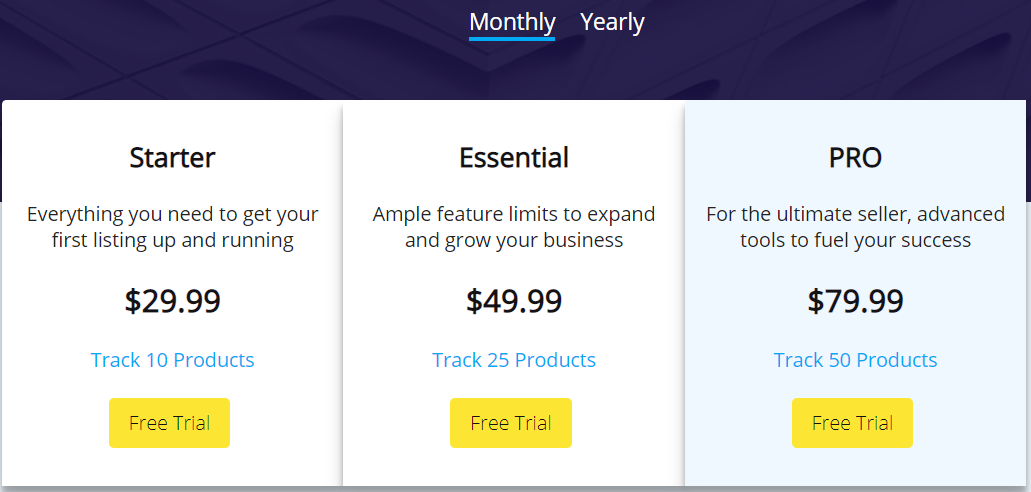 A:卖家能够跟踪多少产品取决订阅计划。通常,Starter计划最多可跟踪最多10个产品,Essential计划最多可跟踪25个产品,在Pro计划中最多可跟踪50个产品。
