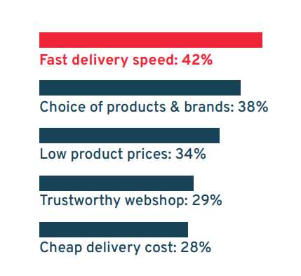 4.坚持配送速度第一原则,其次是产品价格和品牌种类。