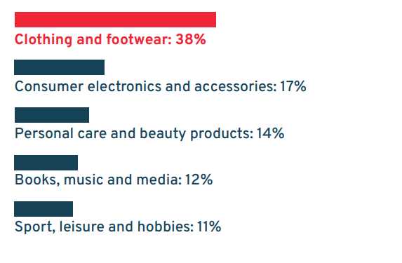根据Statista网站的数据,服装和鞋子是加拿大网上购物最受欢迎的两大类别。除此之外 美容、家居、消费电子、户外运动等品类的需求也十分强劲。