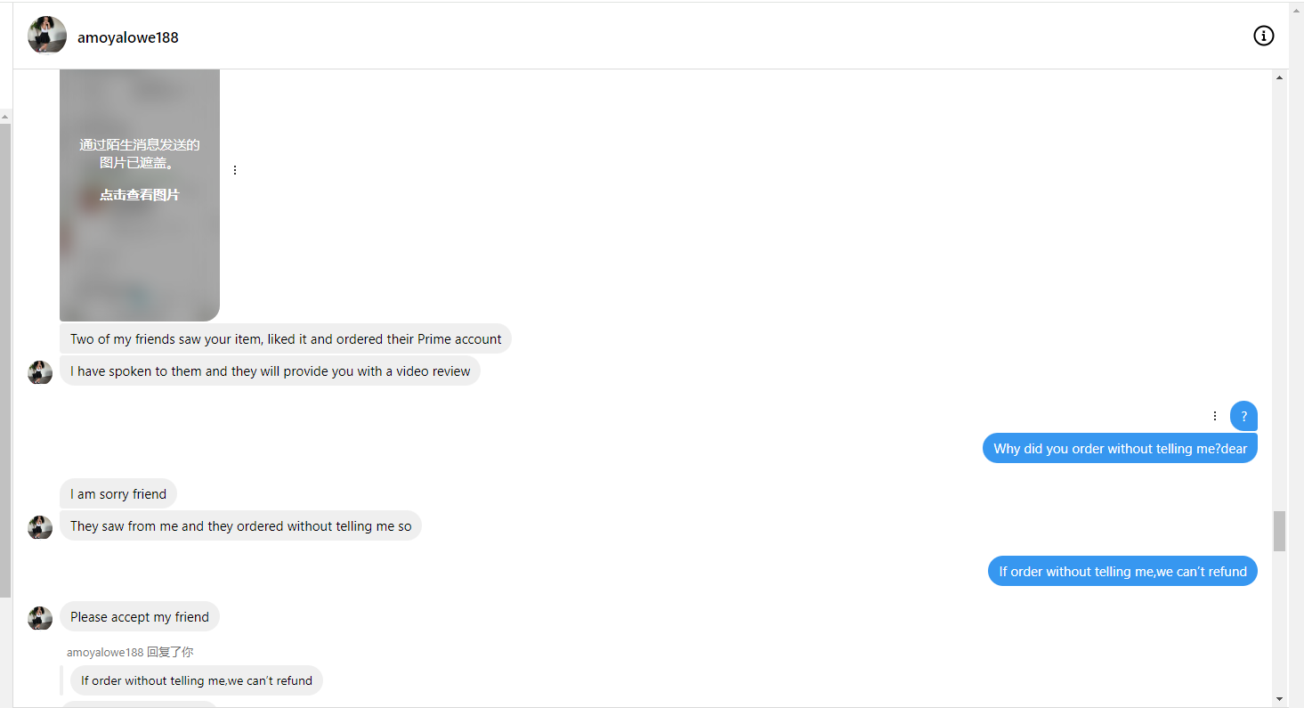 收到货后 退货退款,让朋友恶意下单,不退钱威胁差评