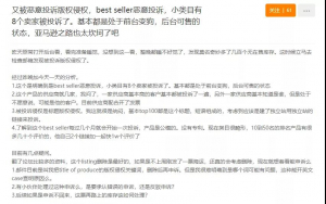 不少卖家纷纷表示也中招了。一位卖家称为此焦虑了一天,好几个账号都收到了涉嫌滥用知识产权,奈何周末联系客服也没有得到回复,很是糟心。甚至还有卖家表示,自己图片都还没有弄好,货还没有到亚马逊仓库,就被抓了。