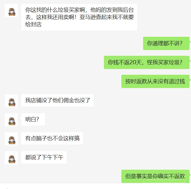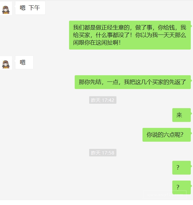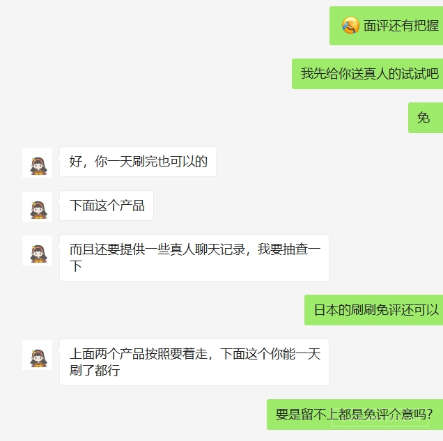 1,这个人是个服务商,假装卖家到处下单,卖家给她返款后不给我返,明明我给他送的免评,却骗卖家说是留评单,一出单号就找卖家要了本金跟佣金。