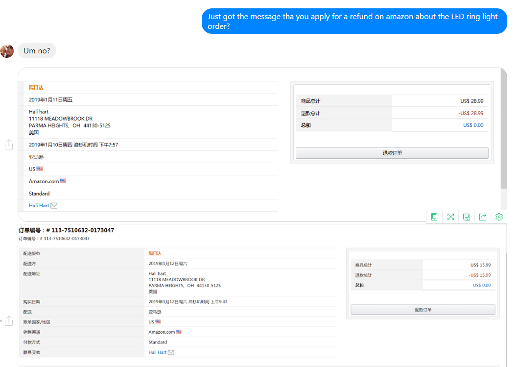 下单后自己退款了,还给发留评界面截图(并非提交完成的那个界面),让我这边退款,找她对峙一开始说没有退款,后来又是一堆理由,骗子永远是骗子,不想爆粗口,希望大家小心。