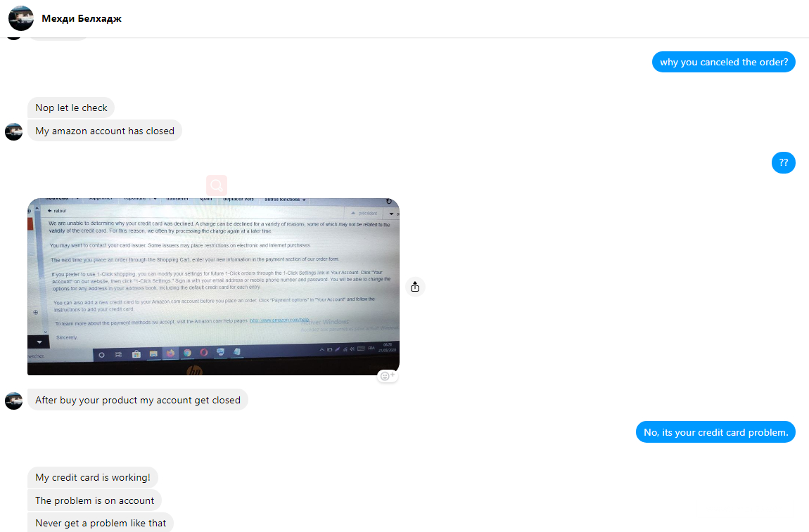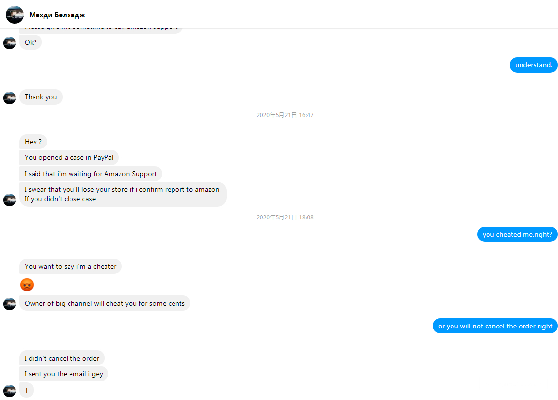 骗子一个,假装YouTube红人,然后骗取钱财。威胁投诉到亚马逊,不给钱就威胁