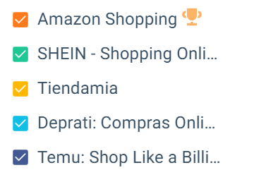 另外在iOS端,最受欢迎的购物APP为亚马逊、SHEIN、Tiendamia、Deprati、TEMU。