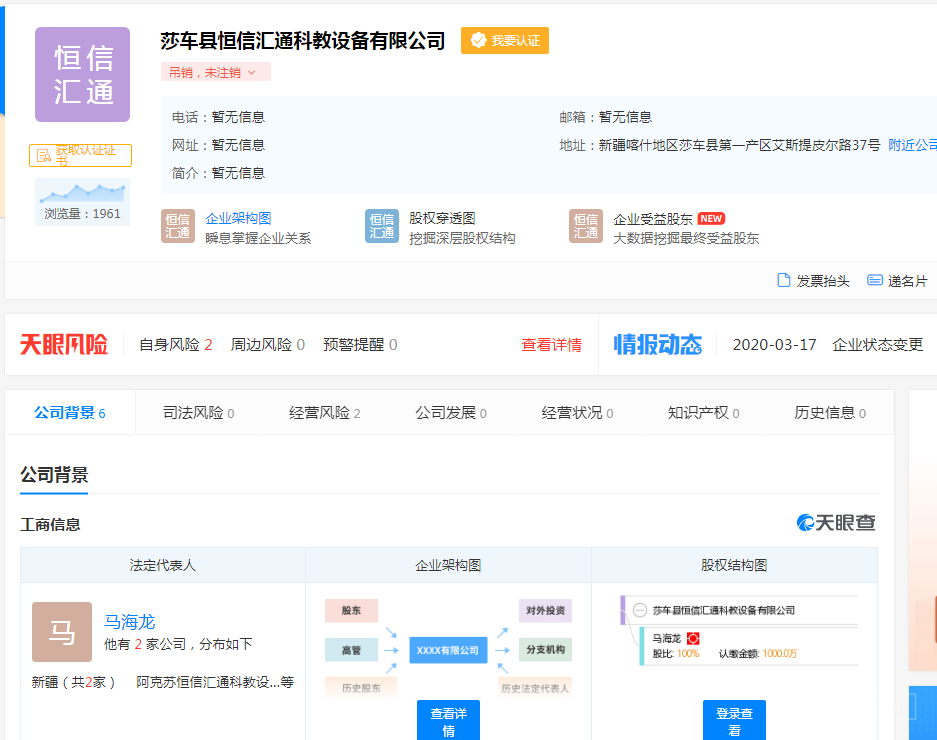 无耻跟卖!!!!!莎车县恒信汇通科教设备有限公司 91653125MA779YJL0U 地址:新疆喀什地区莎车县第一产区艾斯提皮尔路37号