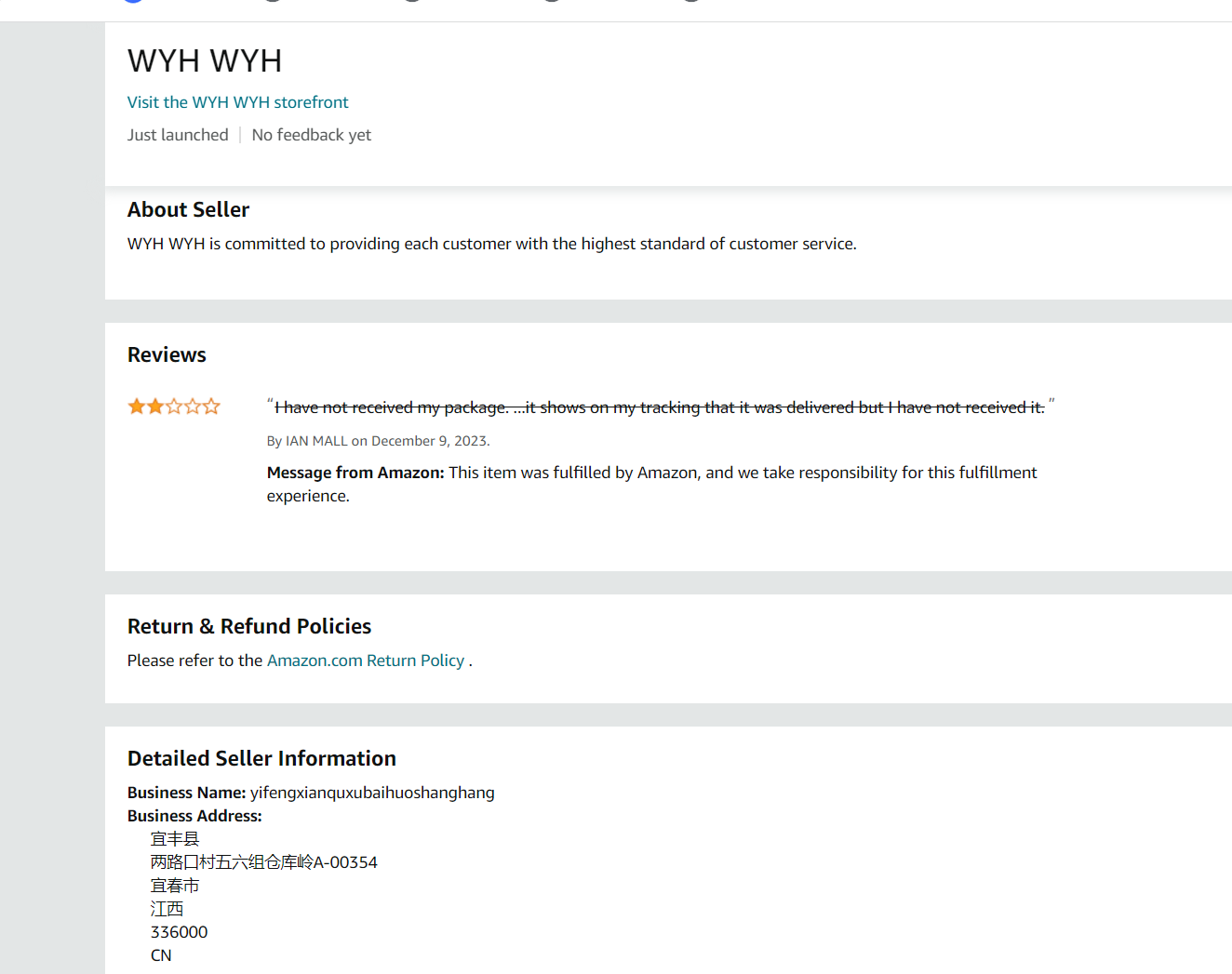 美国站FBA跟卖狗,店铺名称:WYH WYH,整个店铺都是跟卖别人的东西,白天晚上都跟,狗皮膏药一样,晚上大半夜掉价比你低,公司名称:宜丰县璩煦百货商行,公司地址:江西省宜春市 宜丰县两路口村五六组仓库岭A-00354