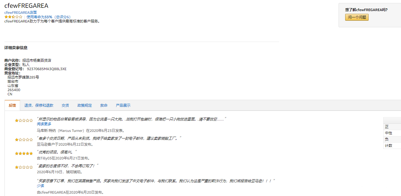 cfewFREGAREA,整个店铺都是跟卖的别人的链接,看了他的评论,别人给他差评,他还说人家恶意下订单,跟卖了别人他还有理了。不要脸的境界,佩服,完全不考虑多少人问候了他全家和他妈。都看看这个狗日的,弄死他。