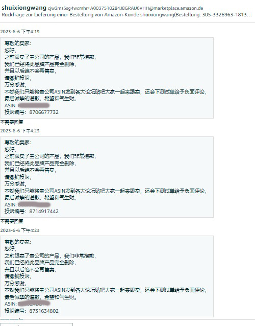 专业跟卖,发邮件不回复,投诉后还继续跟,投诉的多了还拿买家账号在我的店铺恶意下单,买家账号名称:shuixiongwang
