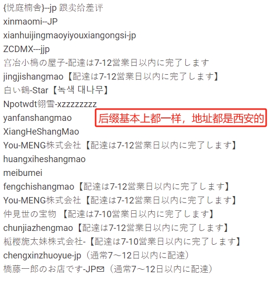 | {悦庭楠舎}--jp 跟卖给差评 | https://www.amazon.co.jp/sp?is-secure=true&&language=zh&ie=UTF8&seller=A1R36KHPP9APRE&isAmazonFulfilled=0&asin=B0CHNQD8JG&ref_=olp_merch_name_0 |