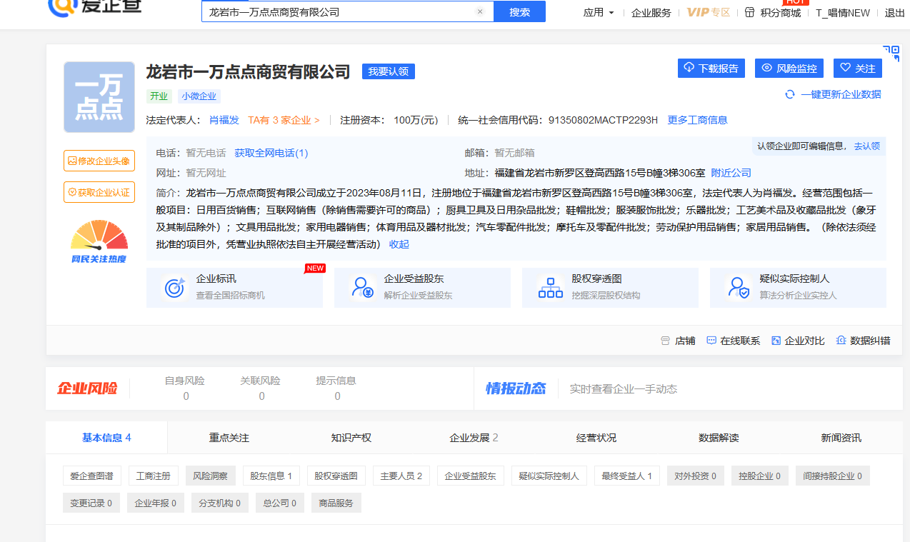 龙岩市一万点点商贸有限公司 91350802MACTP2293H