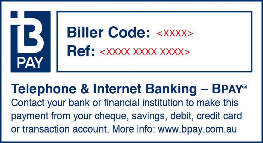 BPAY是澳大利亚的一种电子账单支付系统,支持向注册BPAY账单的支付者转账,例如向当地教育机构支付学费。发起BPAY交易需要账单代码和参考号码,这些信息通常由收款方按以下格式提供: