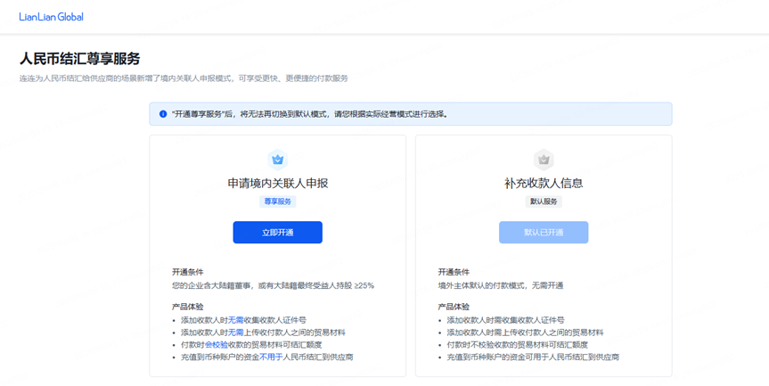 申报模式有两种选择:【境内关联人申报】和【补充收款人信息】