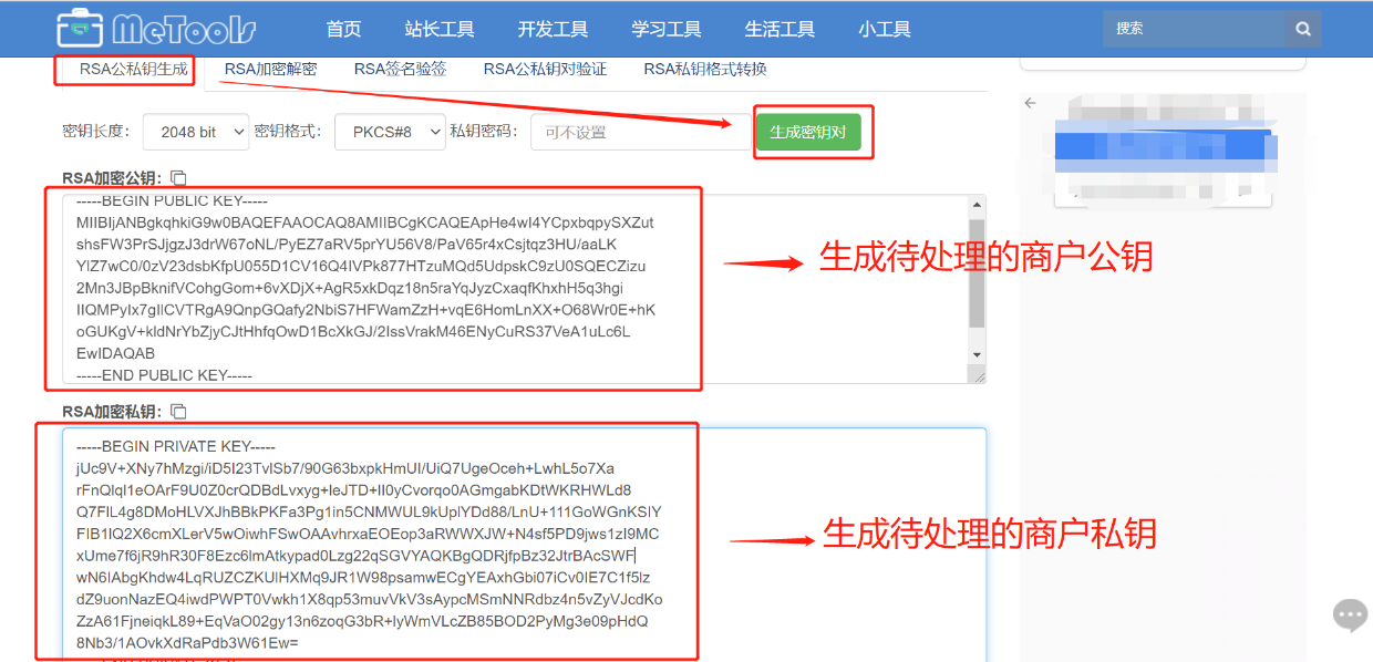 商户公私钥生成: