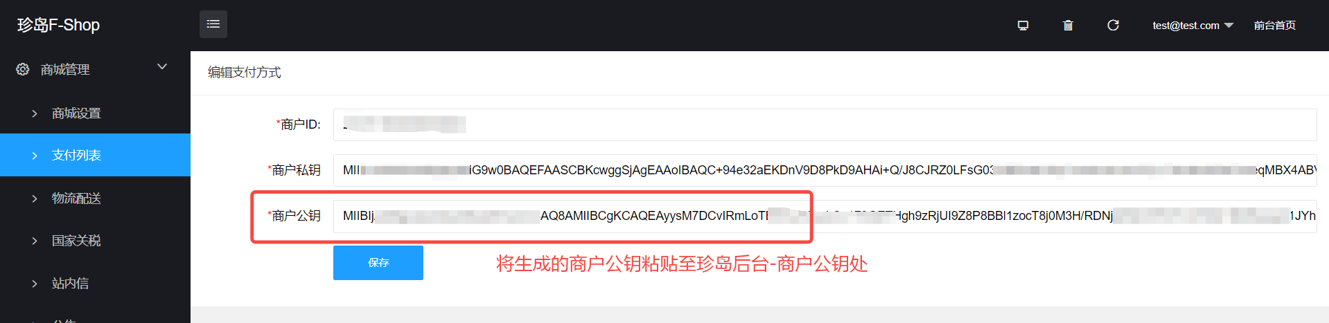 商户公钥配置: