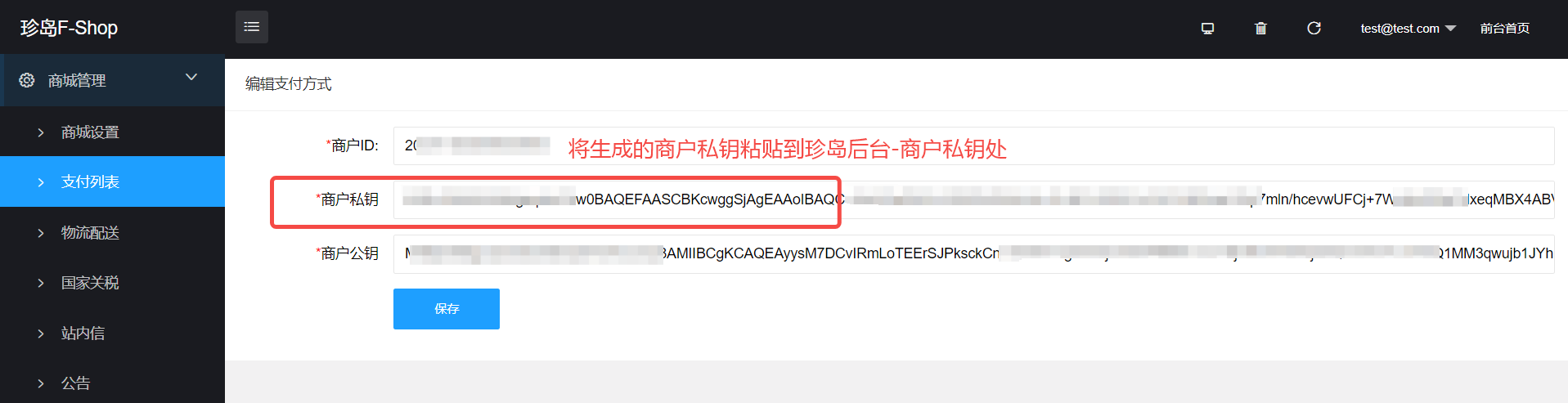 ②商户私钥配置: