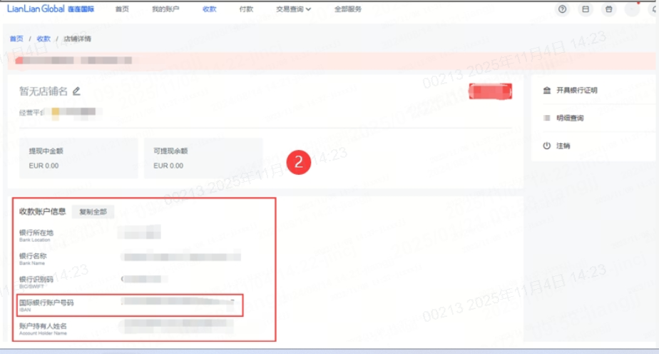 3您好,收款账户申请后,需要实名认证审核通过并且成功绑定您的提现银行卡后才会下发给您,您可以根据以下两种方式进行查询:1)您可点击登录连连官网,在【账户首页】-【收款店铺】下,点击【详情】,可在【账户信息】页查看收款账户信息。