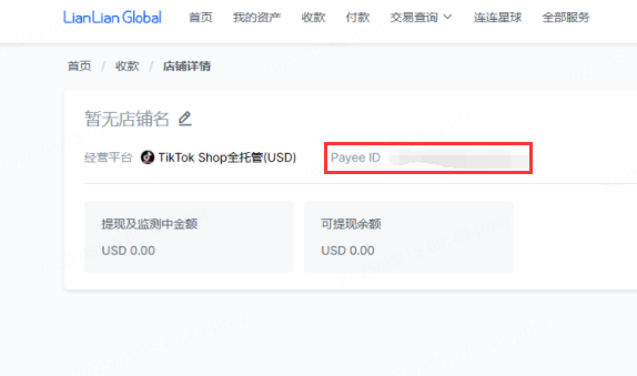 1、直连平台(如ozon跨境店、shopee跨境店、lazada跨境店、Tiktok shop跨境店等)不生成收款卡号信息。直连平台的店铺与连连绑定成功后,连连官网会显示该店铺的payeeid