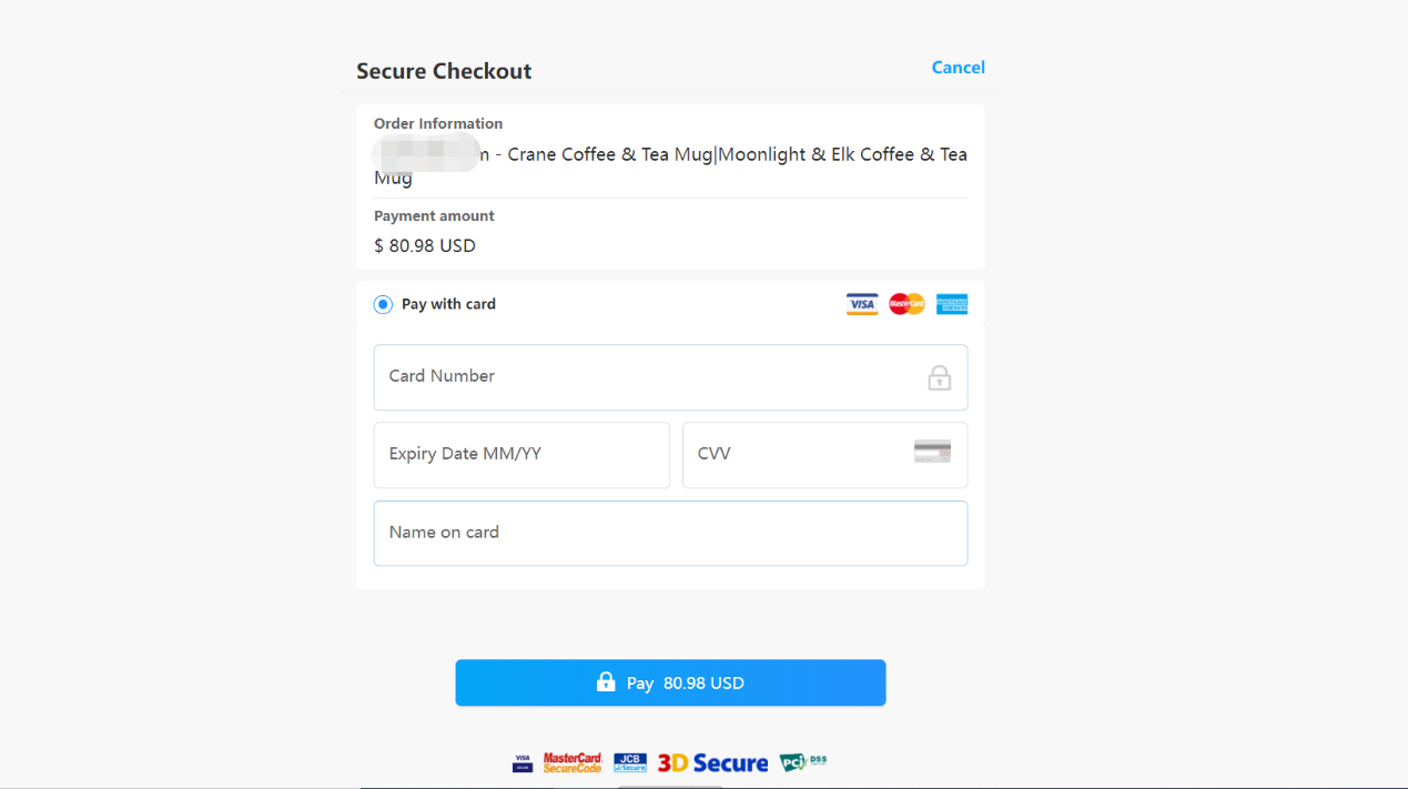 完成以上配置后,请您打开您接入的站点,选择商品下单,若跳转支付收银台界面如下图所示,则说明配置成功;