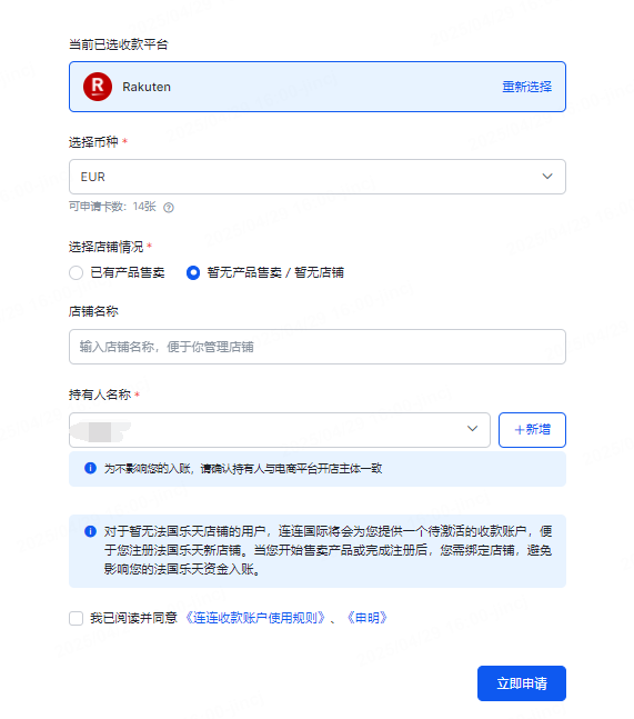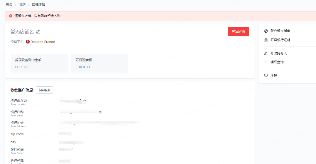 五、法国乐天店铺后台绑定连连收款账户