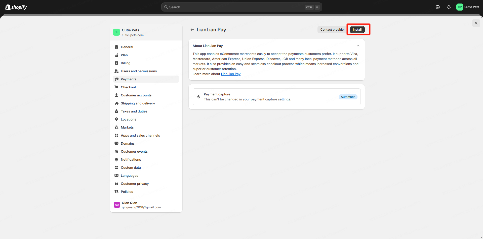 1、点击跳转Shopify App Store,在搜索框搜索LianLian Extention点击进入详情页,下一步点击安装