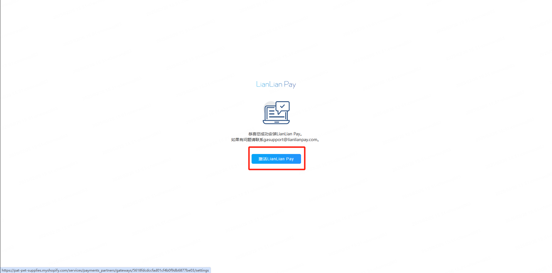 3、安装成功,点击激活LianLian Pay,进入配置页。