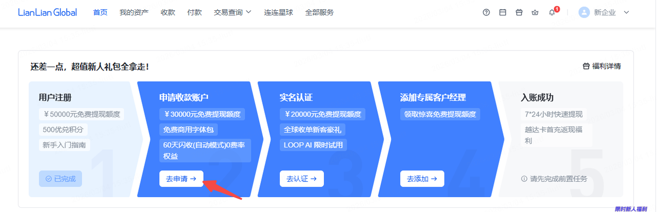 1、连连国际官网页面右上角,点击“注册” https://global.lianlianpay.com/