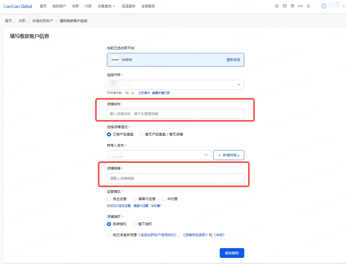 将链接复制填入连连添加店铺