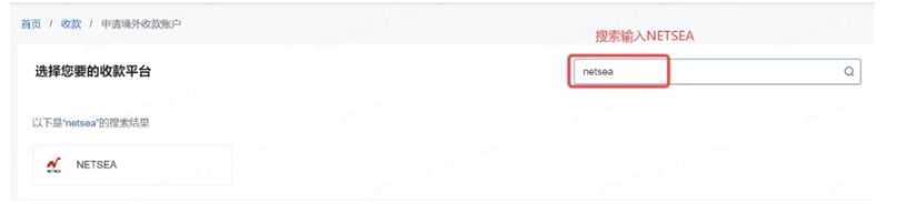 2. 搜索/选择NETSEA收款平台